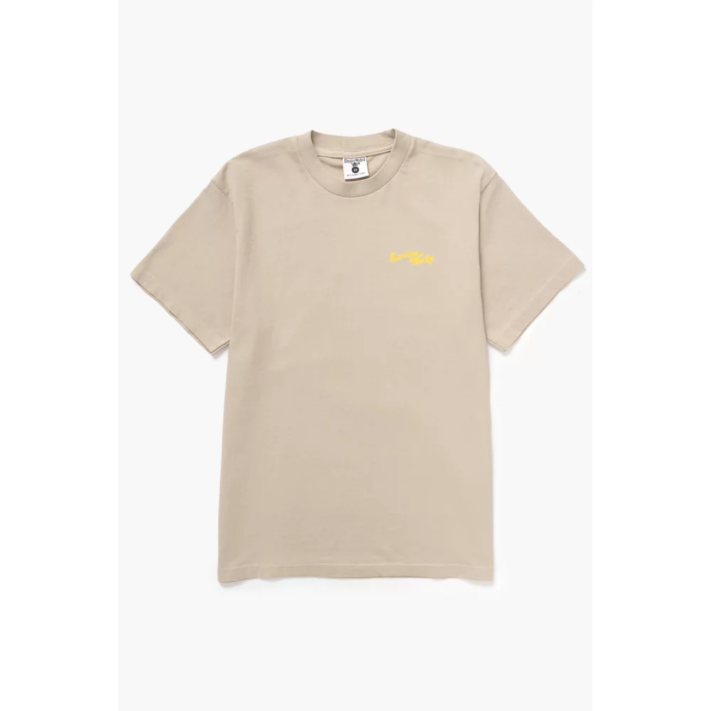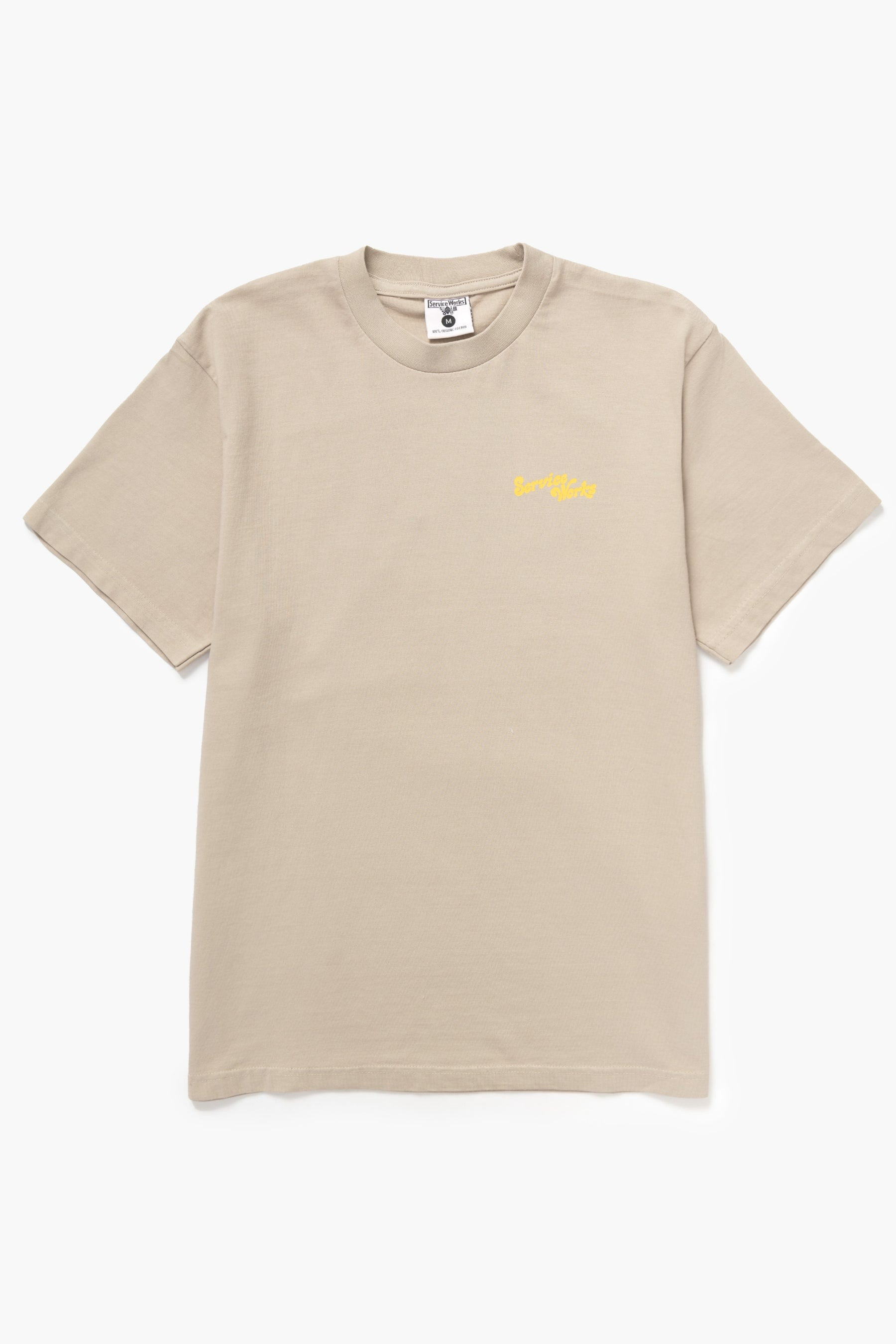 T-SHIRT TRAVAIL + PLAISIR EN PIERRE CONSTRUCTION EN COTON BIOLOGIQUE ÉPAIS DE 7 OZ GRAPHIQUES SÉRIGRAPHIÉS À LA MAIN TEINT EN PIÈCE ENCOLURE STYLE VINTAGE INTÉGRÉE CONFORME À LA TAILLE