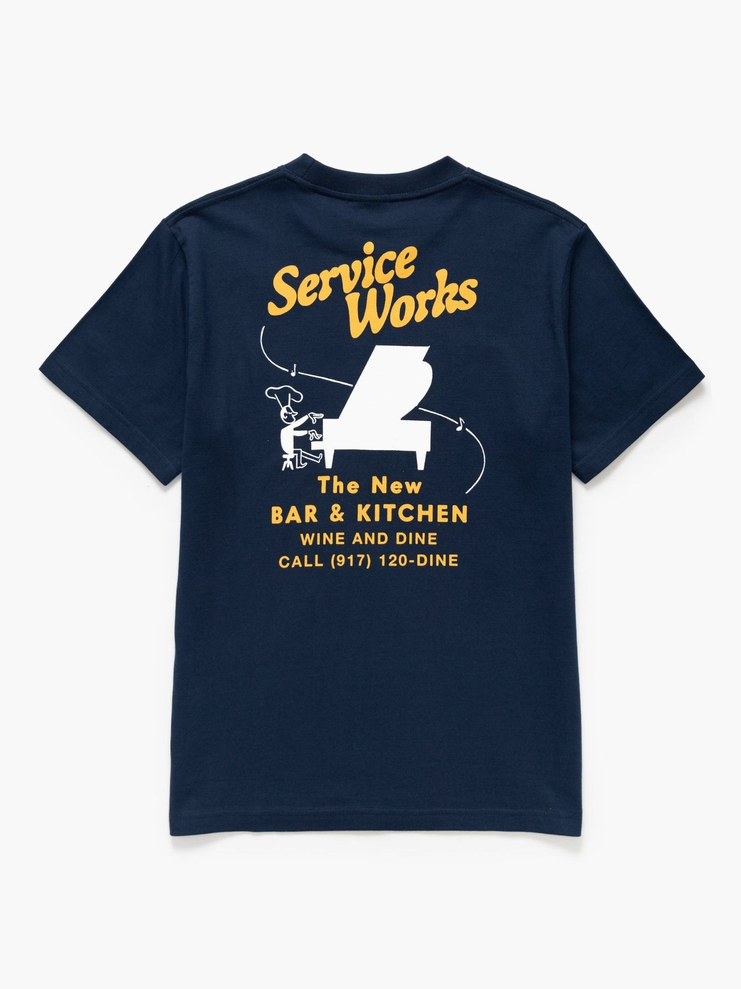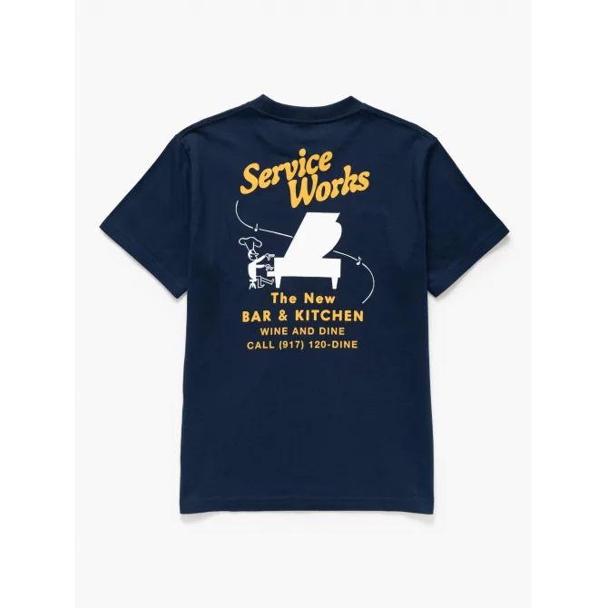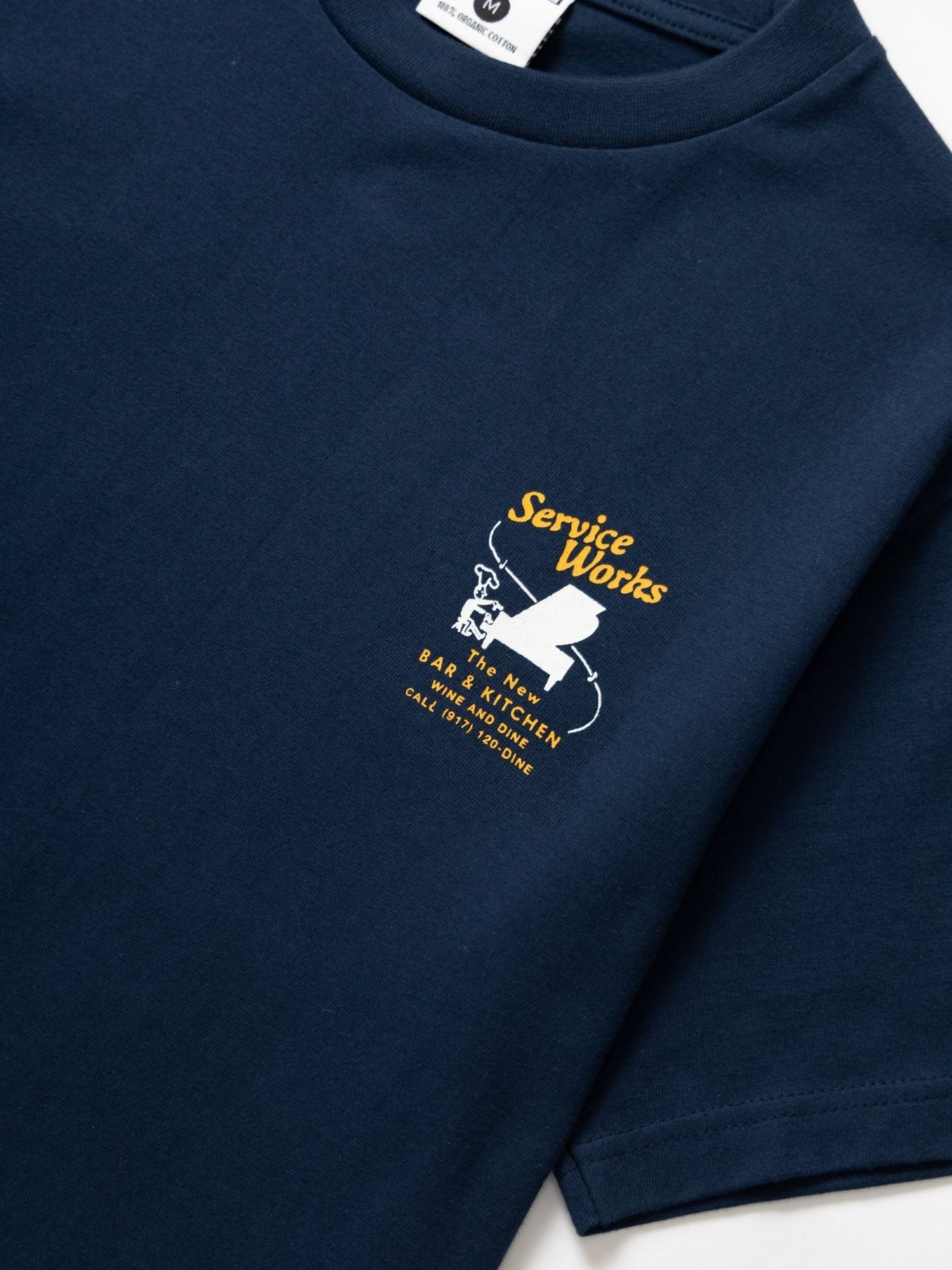 T-SHIRT BAR & KITCHEN PAR SERVICE WORKS FABRIQUÉ EN COTON BIOLOGIQUE GOTS 250 G/M² IMPRIMÉ SÉRIGRAPHIÉ ENCOLURE SURPIQUÉE