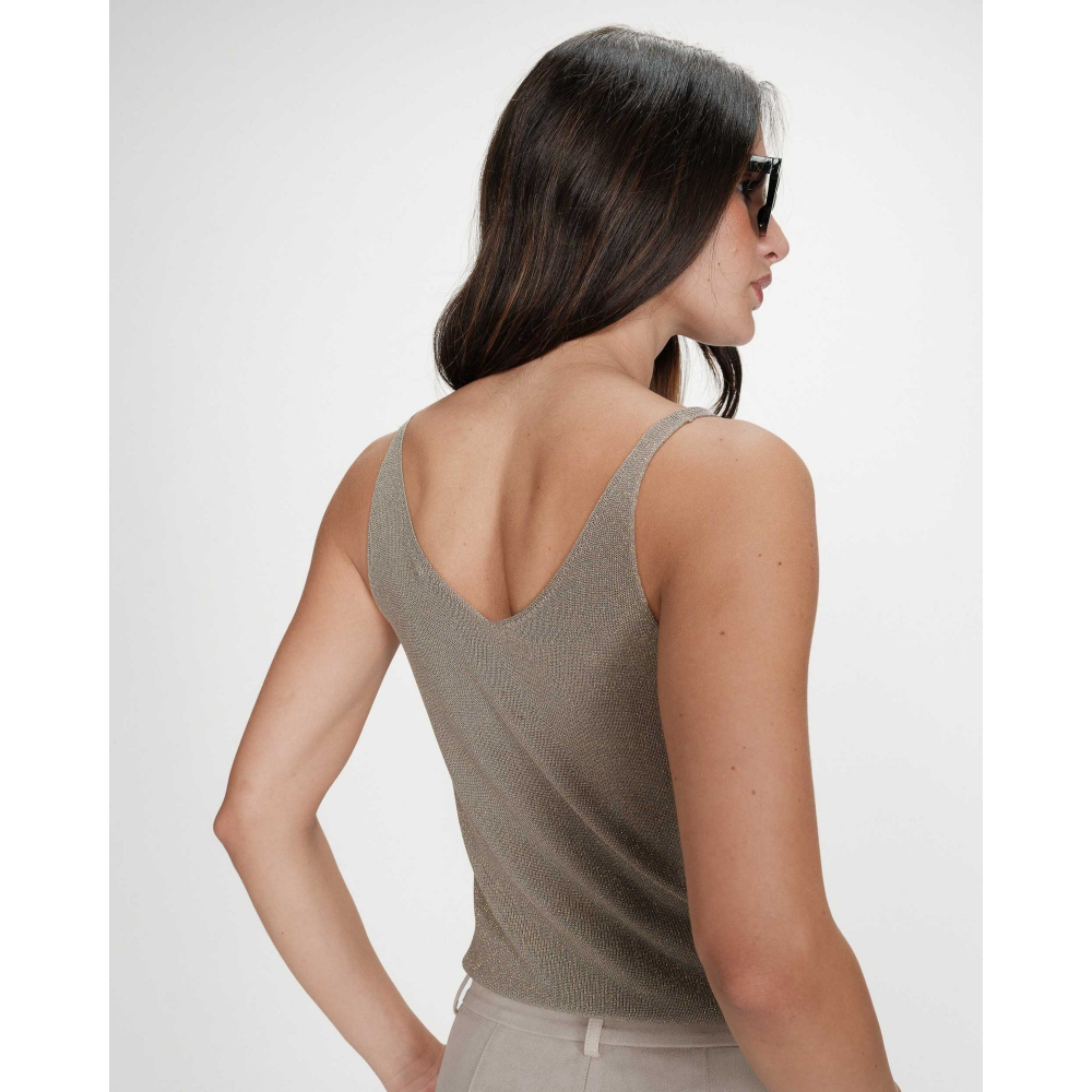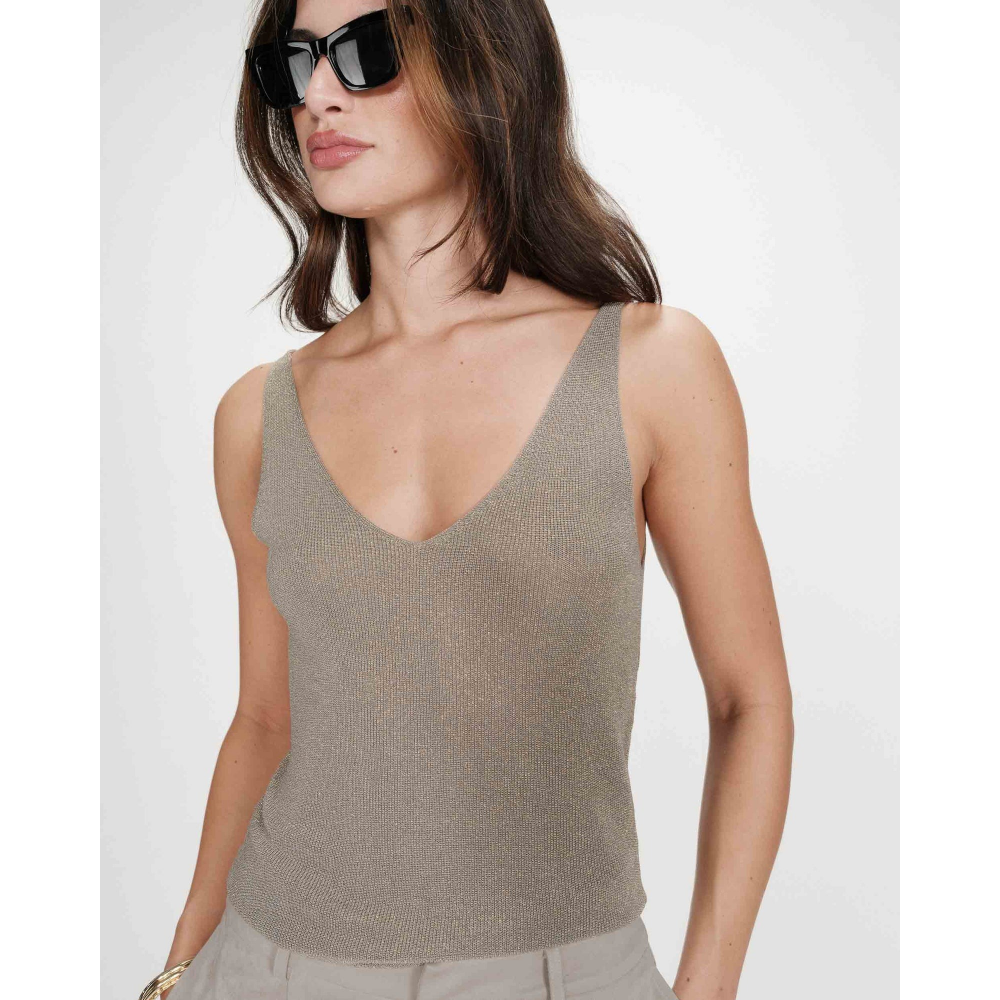 LE TOP SANS MANCHES PAILLETTE, CONFECTIONNÉ DANS UN TISSU EN LUREX, S'INVITE DANS LE VESTIAIRE DE CHAQUE SAISON. LE DÉBARDEUR EN LUREX PAILLETTE EST SANS MANCHES ET A UNE ENCOLURE EN V QUI SOULIGNE LE DÉCOLLETÉ. LA COUPE AJUSTÉE ET LA MAILLE FINE DONNENT UN EFFET SECONDE PEAU ET SUBLIMENT LA SILHOUETTE FÉMININE.