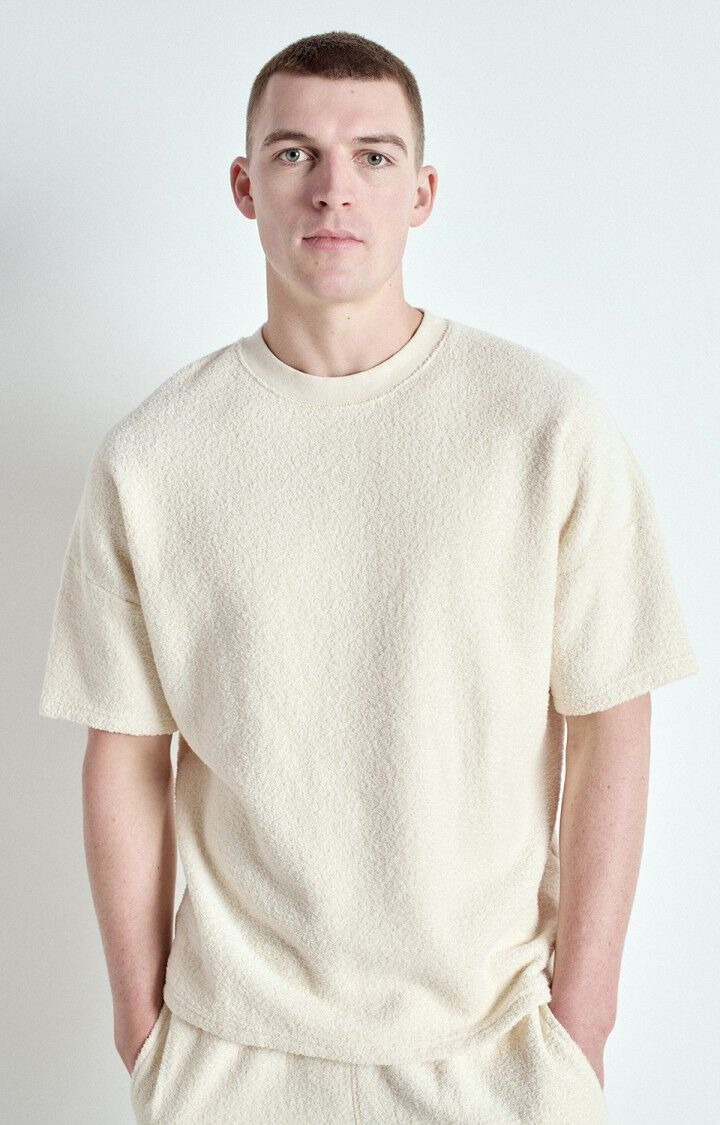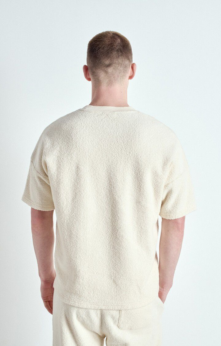 T-SHIRT MANCHES COURTES COL ROND MOLLETON EXTÉRIEUR EN RELIEF MOLLETON INTÉRIEUR EN COTON GRATTÉ DOUX FIBRES ISSUES DE LAGRICULTURE BIOLOGIQUE TAILLE NORMALEMENT. PRENDRE VOTRE TAILLE HABITUELLE.