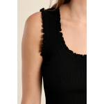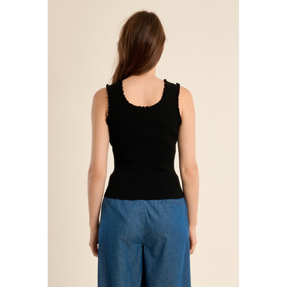 DÉBARDEUR CÔTELÉ -LARGES BRETELLES -ENCOLURE CARRÉE -COUPE CINTRÉE -FINITION VOLANTÉE SUR LE DÉCOLLETÉ ET LES EMMANCHURES -LONGUEUR DEPUIS L'ÉPAULE 55CM POUR UNE TAILLE S