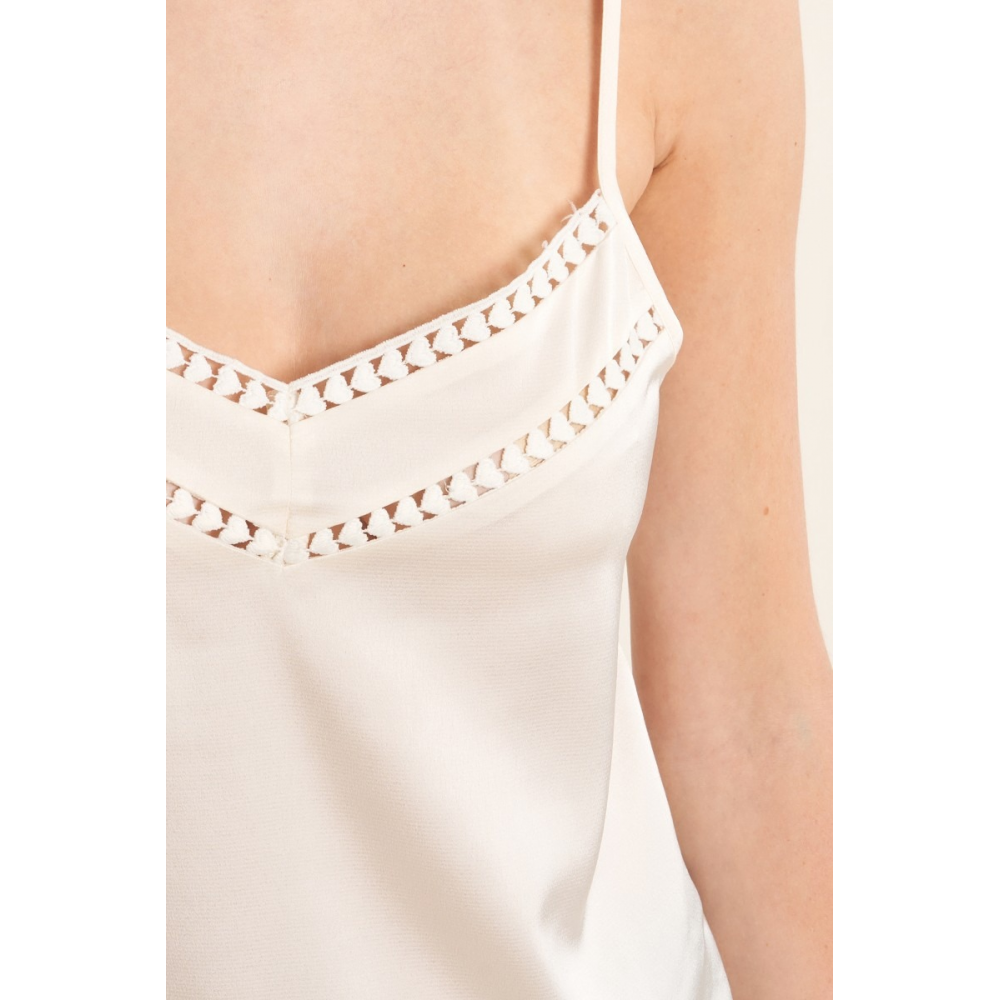 MOLLY BRACKEN - CAMISOLE CARACO SATINÉ BANDES AJOURÉES AU DESSUS DE LA LIGNE DE POITRINE BRETELLES RÉGLABLES