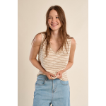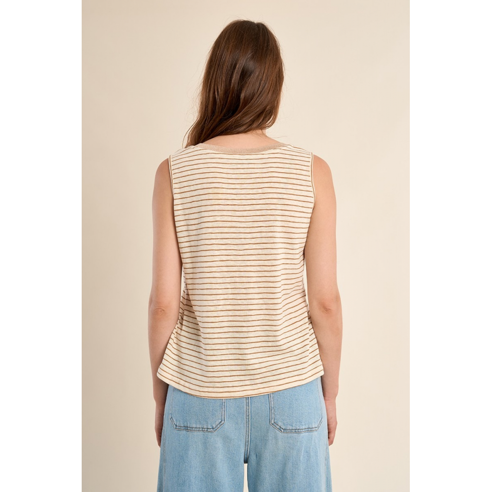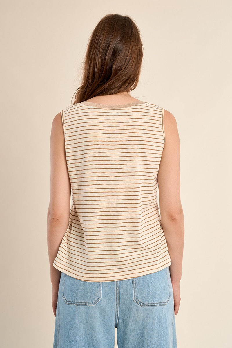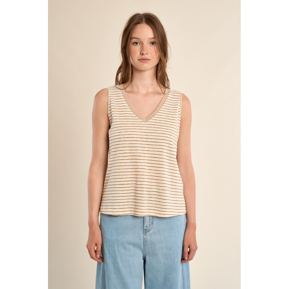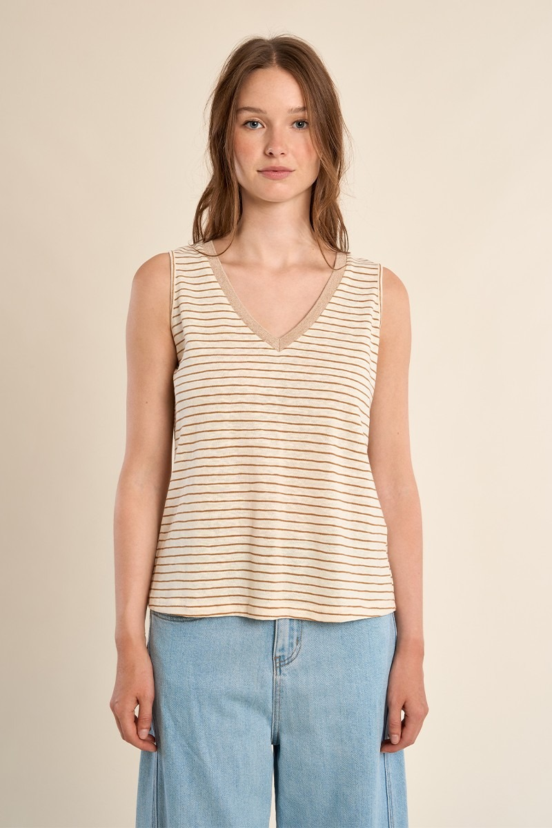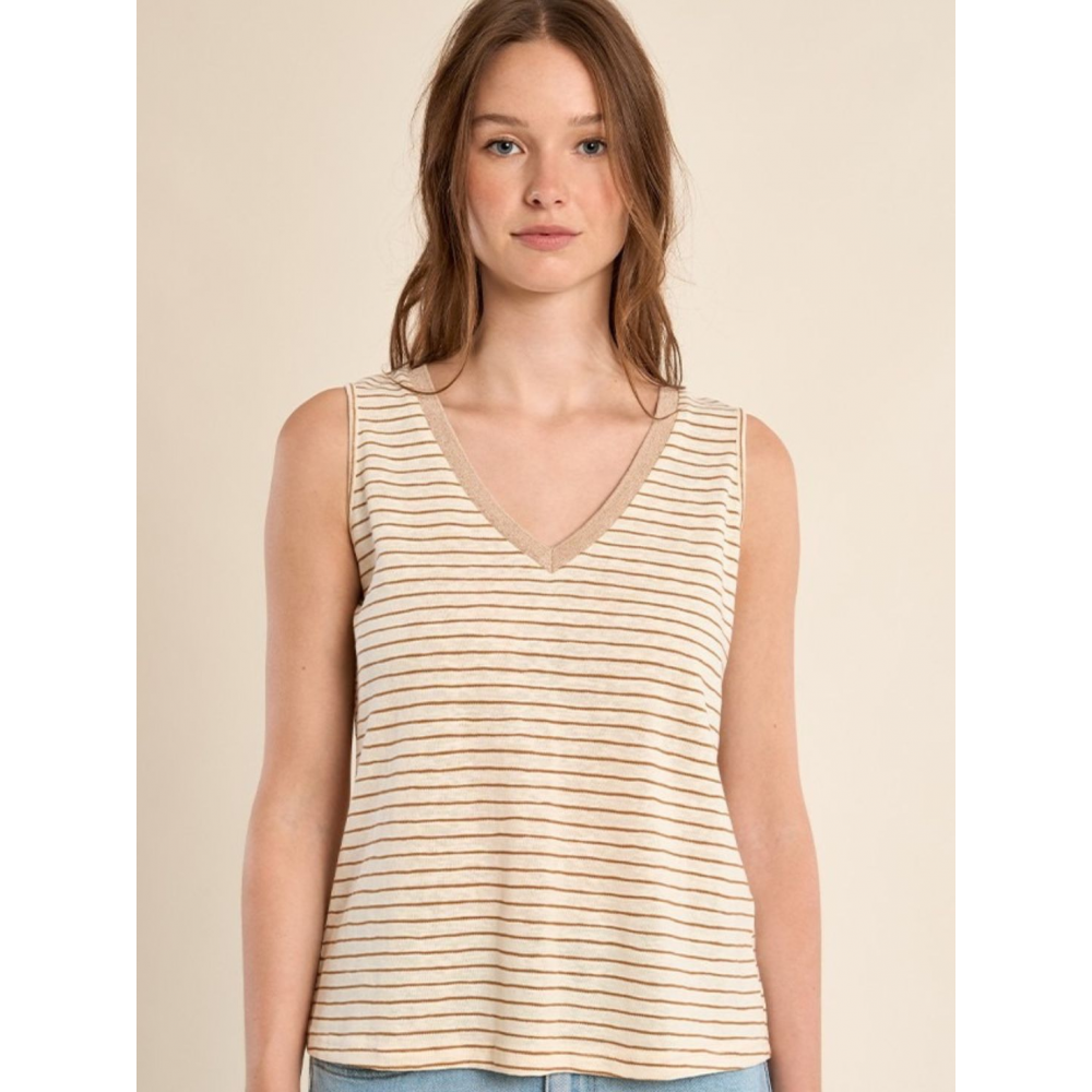 MOLLY BRACKEN - TOP DÉBARDEUR À LARGES BRETELLES, MARINIÈRE ENCOLURE V, DORÉE COUPE DROITE