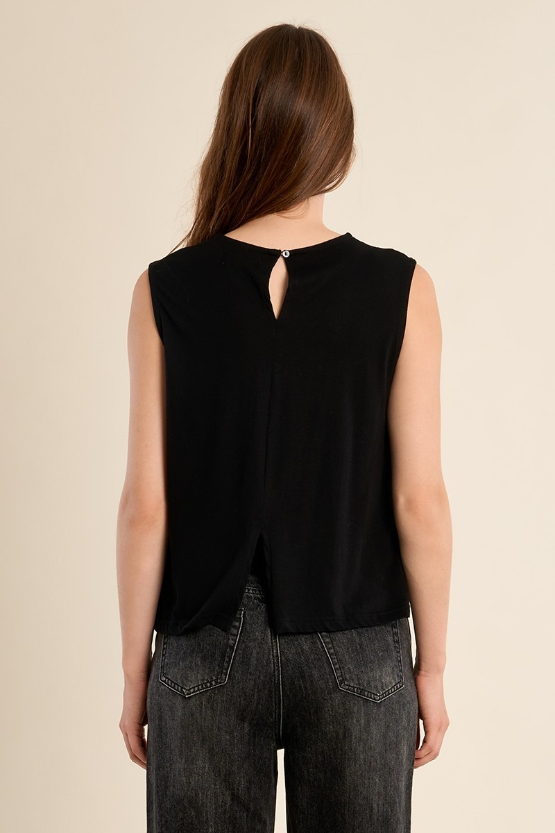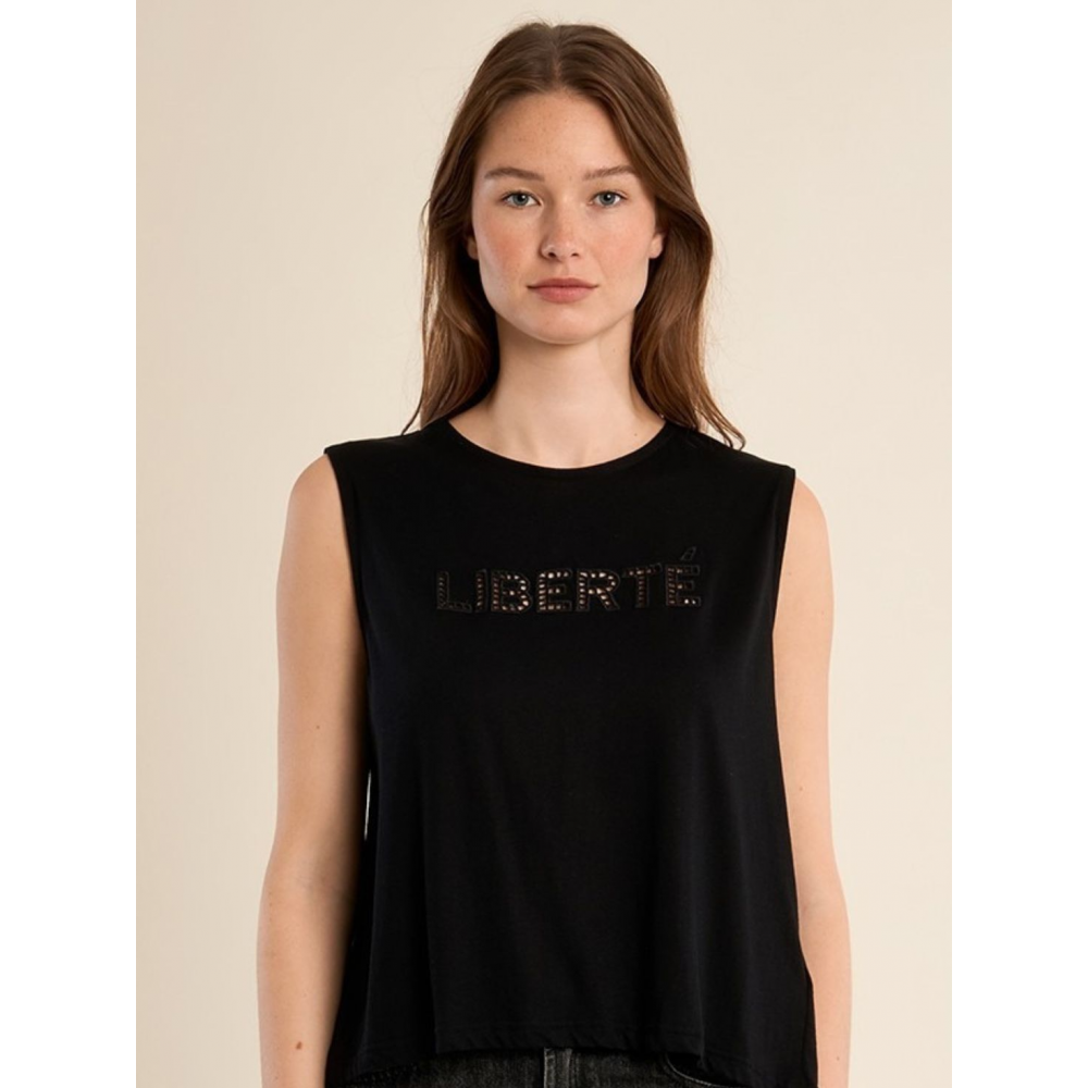 MOLLY BRACKEN - TEE T-SHIRT AJOURÉ AVEC INSCRIPTION ""LIBERTÉ"" SANS MANCHES COL ROND