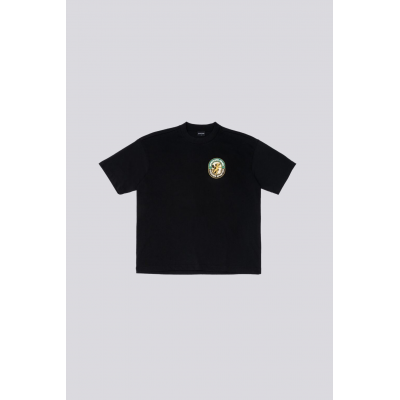 Composition T-SHIRT MANCHES COURTES COL ROND CLASSIQUE COUPE DROITE PATCH LOGO TON SUR TON EN MANCHE STYLE MINIMALISTE EFFET VINTAGE