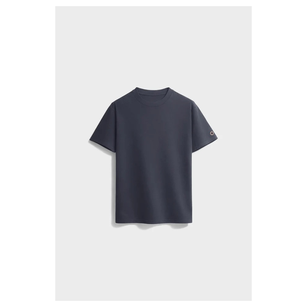 T-SHIRT MANCHES COURTES COL ROND CLASSIQUE COUPE DROITE PATCH LOGO TON SUR TON EN MANCHE STYLE MINIMALISTE EFFET VINTAGE