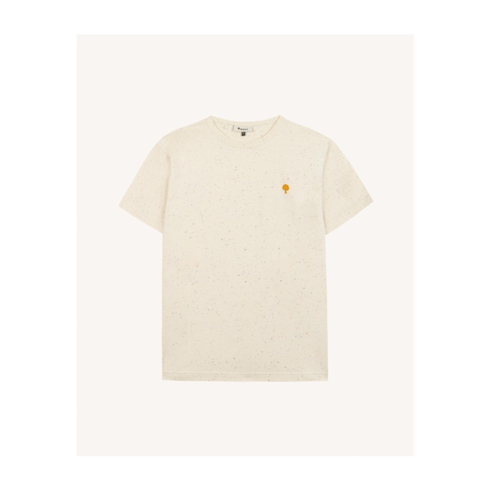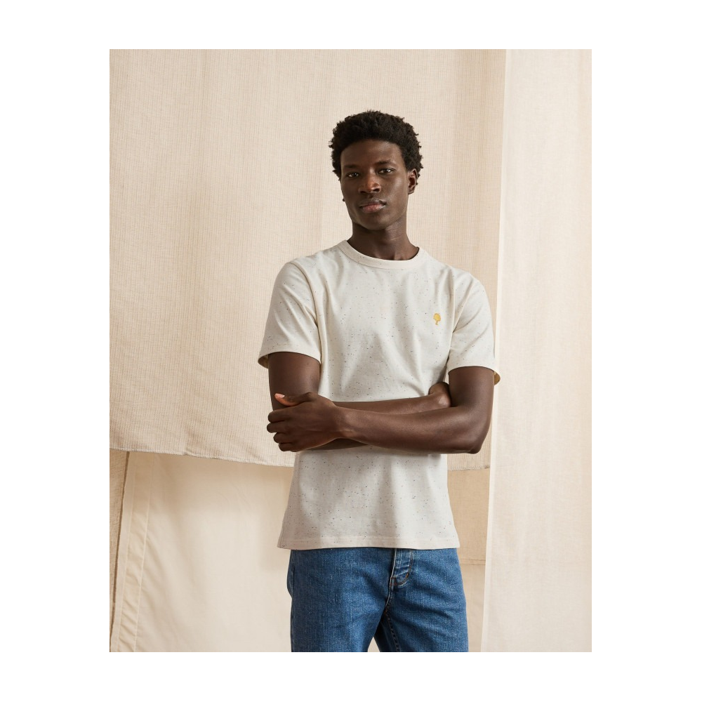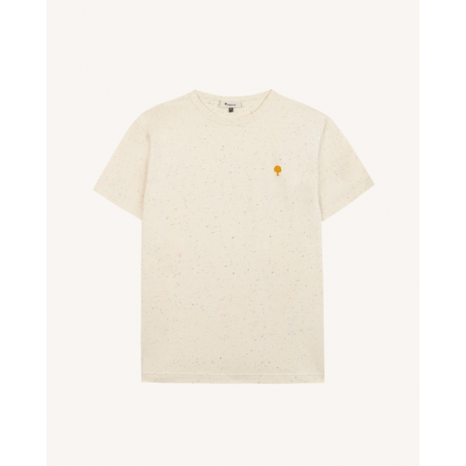 * T-SHIRT LUGNY ÉCRU AU STYLE OVERSIZE ET RÉTRO. * COUPE LARGE POUR UN PORTÉ DÉCONTRACTÉ ET MODERNE. * JERSEY LOURD MOUCHETÉ OFFRANT TENUE ET CARACTÈRE. * ENCOLURE ÉPAISSE STRUCTURANT LE HAUT DU BUSTE. * BRODERIE ARBRE CONTRASTÉE POUR UNE SIGNATURE DISCRÈTE. * PIÈCE FACILE À PORTER SEULE POUR UN LOOK AFFIRMÉ.