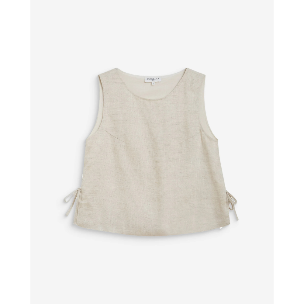 - TOP EN LYOCELL ET LIN MÉLANGÉS - COUPE DROITE - SANS MANCHES - ENCOLURE RONDE - LIENS À NOUER SUR LES CÔTÉS - DOUBLÉ