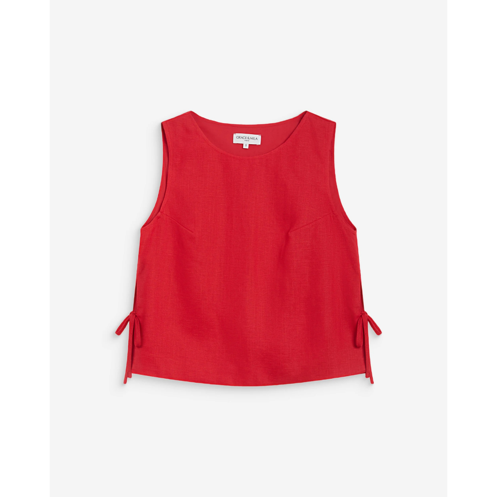 - TOP EN LYOCELL ET LIN MÉLANGÉS - COUPE DROITE - SANS MANCHES - ENCOLURE RONDE - LIENS À NOUER SUR LES CÔTÉS - DOUBLÉ