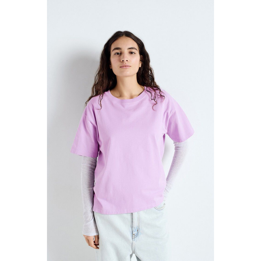 T-SHIRT DROIT MANCHES COURTES COL ROND COTON LISSE ET ÉPAIS MATIÈRE COMPACTE OVERSIZE. SE PORTE AMPLE, PRENEZ VOTRE TAILLE HABITUELLE.