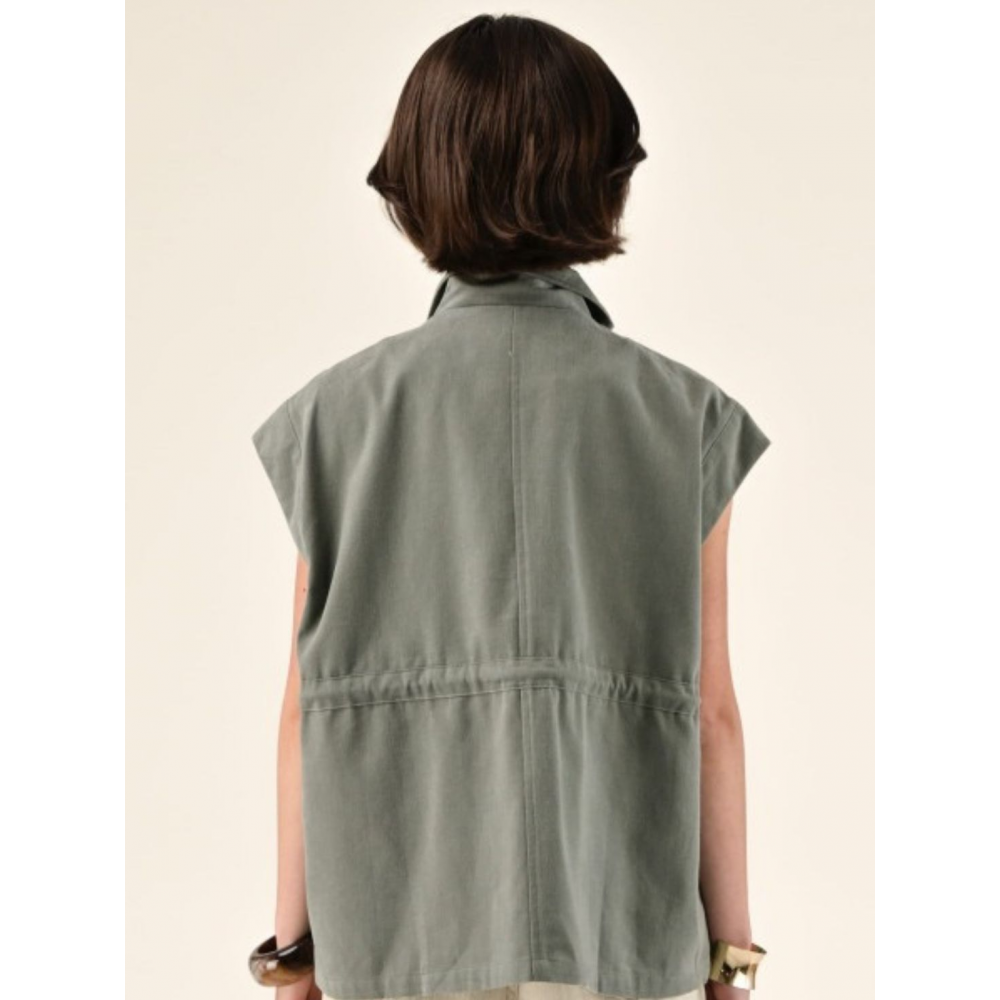 - SANS MANCHES PENSÉE POUR LA SUPERPOSITION. SA COUPE DROITE ET STRUCTURÉE S'ACCOMPAGNE DE GRANDES POCHES PLAQUÉES, .LE TISSU EST ANIMÉ DE FINES RAYURES PONCTUÉES DE DÉTAILS COLORÉS. LE GILET VIVIANNA SE PORTE AUSSI BIEN SUR UNE CHEMISE QUE SUR UN T-SHIRT OU UN PULL FIN.UNE PIÈCE FONCTIONNELLE ET SINGULIÈRE