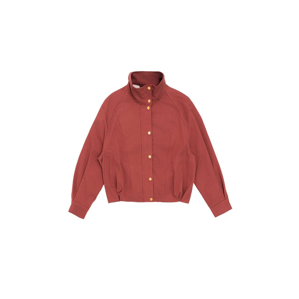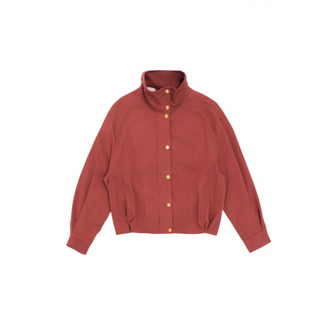 VESTE COURTE COUPE OVERSIZE COL MONTANT ÉVASÉ MANCHES AMPLES AVEC FENTES BOUTONNÉES BOUTONNAGE DEVANT AVEC BOUTONS PRESSIONS POCHES RAGLAN SUR LES CÔTÉS MODÈLE ENTIÈREMENT DOUBLÉ